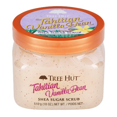 BUY NOW ON Target. Tree Hut Tahitian Vanilla Bean Shea Sugar Body Scrub - 18oz. Tree Hut Vitamin C Shea Sugar Scrub is paraben free vegan sulfate free alcohol free contains no formaldehyde donors has a no-slip formula and long-lasting fragrance.